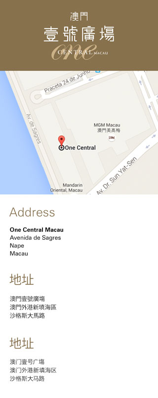 Alternatively, you may choose to take the free shuttle bus from various locations to MGM MACAU, which is located next to One Central Macau.